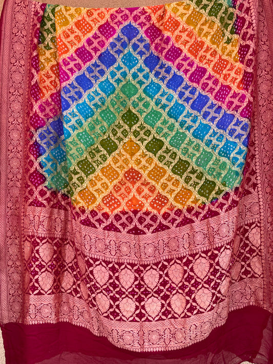 BANDHANI MULTI COLOUR GEORGETTE DUPATTA WITH ZARI WORK