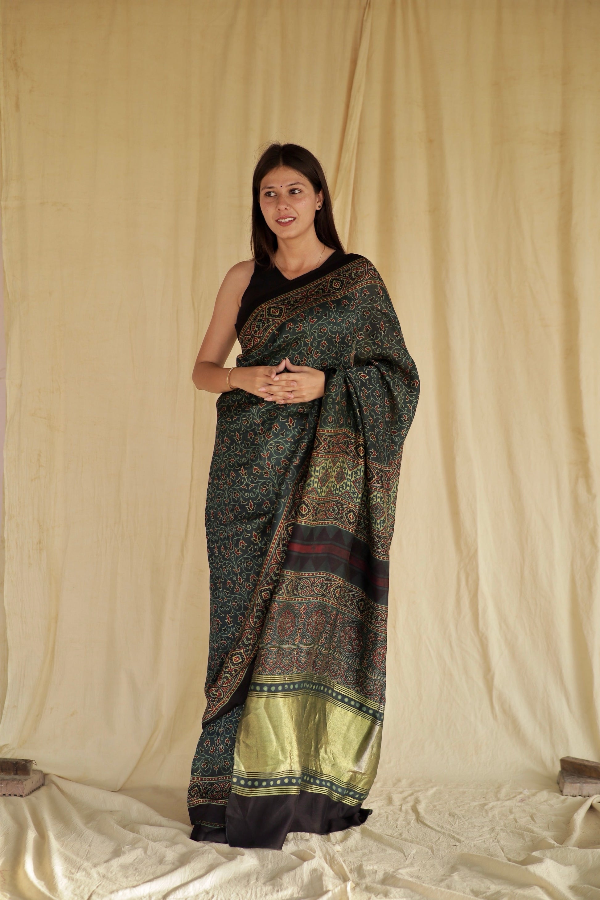 The magic of natural dyes in Handblock Ajrakh extends beyond aesthetics. In winter, the fabric's pores close, offering warmth, while in summer, they expand, facilitating airflow. This dynamic quality makes Ajrakh a versatile choice, suitable for year-round wear, blending comfort and style seamlessly.