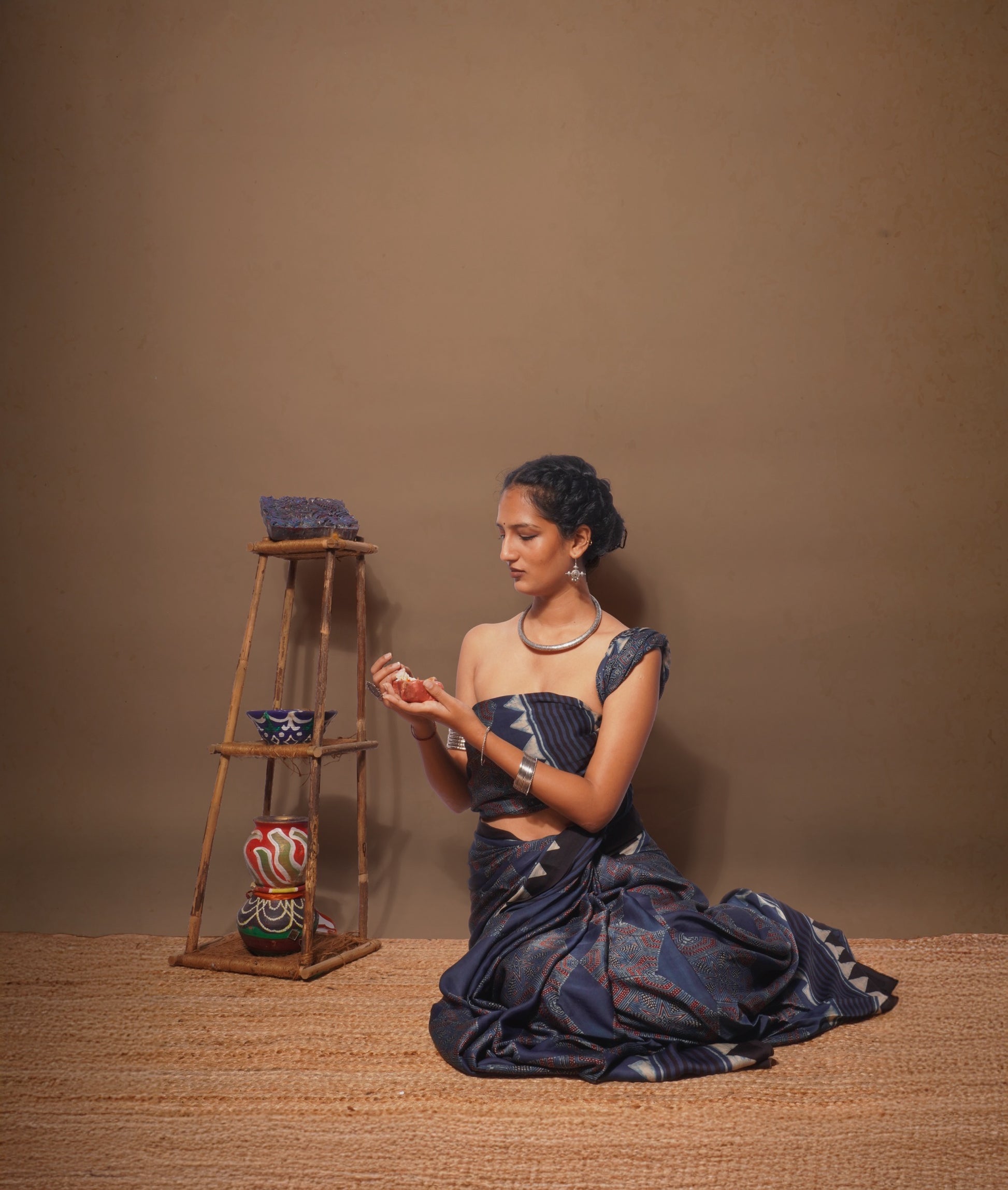 Created with love and care by artisans, the Ajrakh hand blocking process is a laborious yet rewarding journey, taking several weeks to complete. The entire process involves the complexity of the 14-16 step dyeing stages.