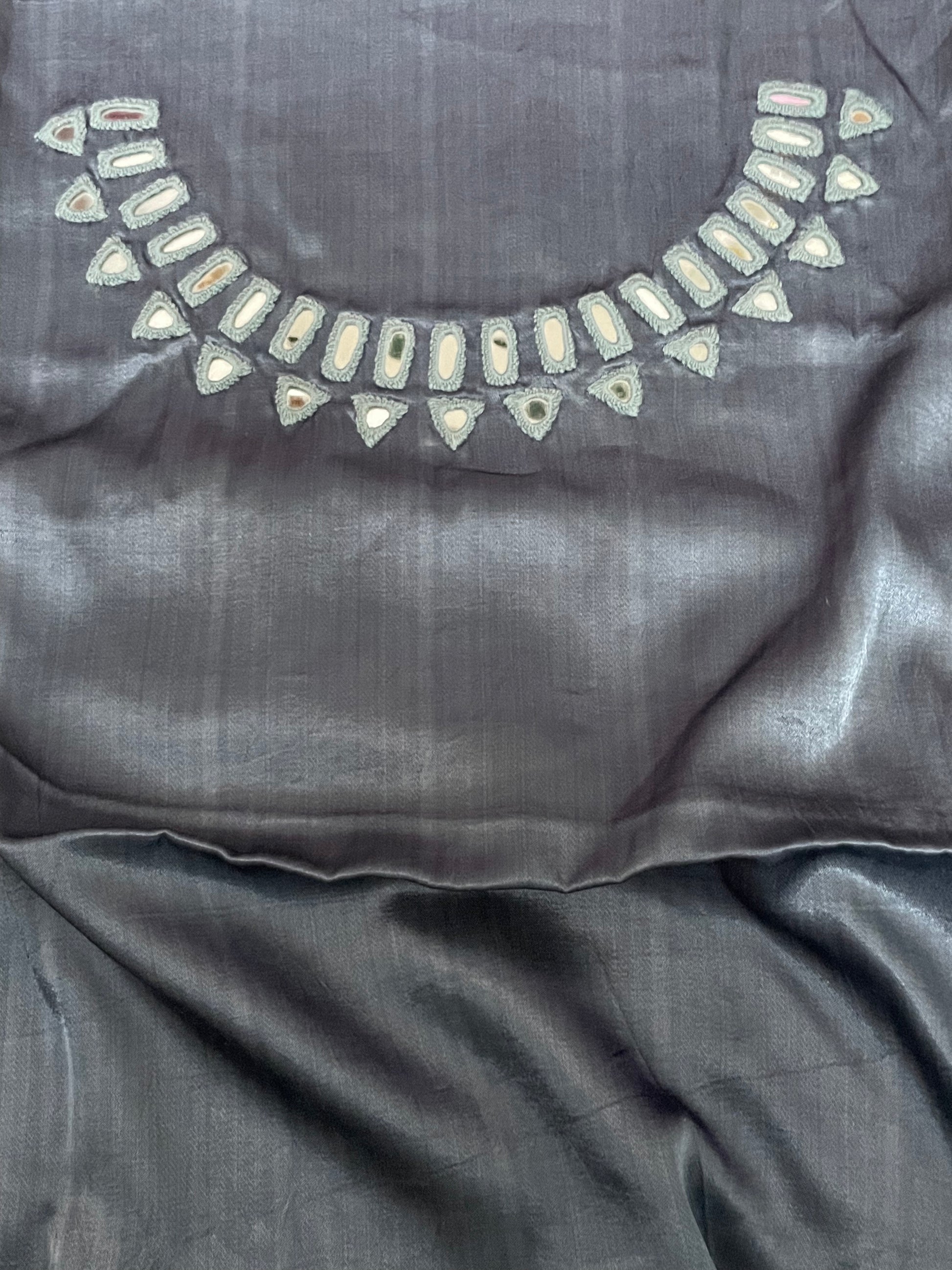 Note: Traditional mirror hand embroidery may exhibit some characteristic imperfections, highlighting the handmade process.