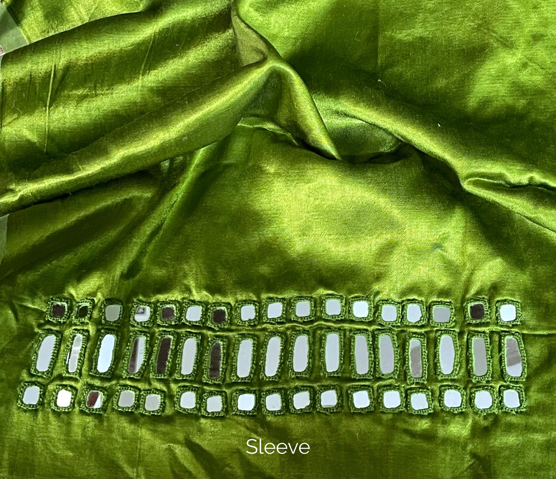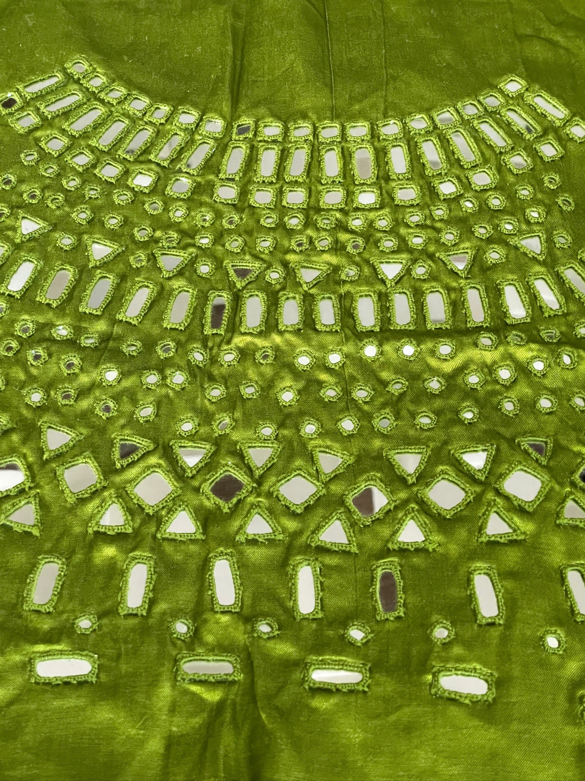 Note: Traditional mirror hand embroidery may exhibit some characteristic imperfections, highlighting the handmade process.